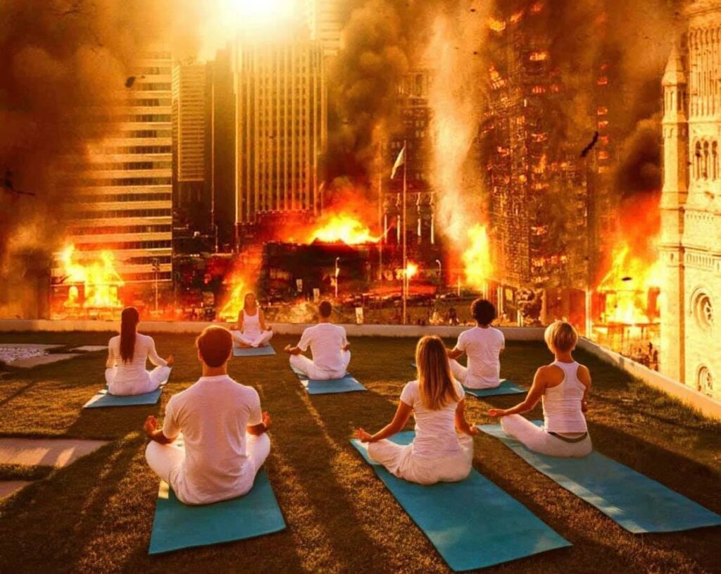 ในขณะที่บ้านเมืองลุกเป็นไฟ เราสามารถใช้คำคมสวยหรูเพื่อพัฒนาจิตใจตัวเองก็ได้ หรือ take action ในฐานะผู้นำก็ได้ มีทางเลือกต่างๆ เช่น